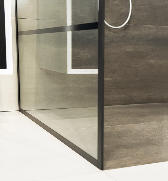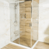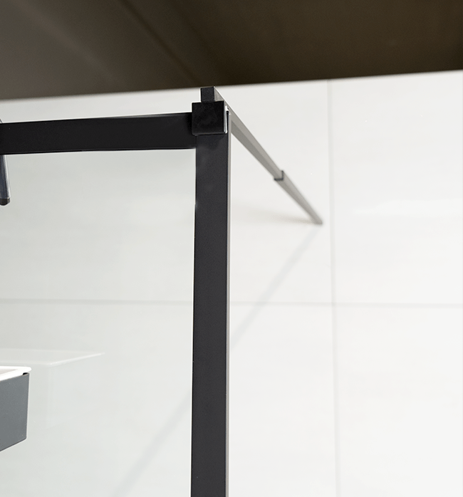Modeli : CUBE Dimensioni : 80cm , 90cm , 100cm , 110cm , 120cm Lartesia : 200cm Trashesia: 8mm Ngjyra : Transparent me kornize te zeze Lloji i xhamit : Temperuar